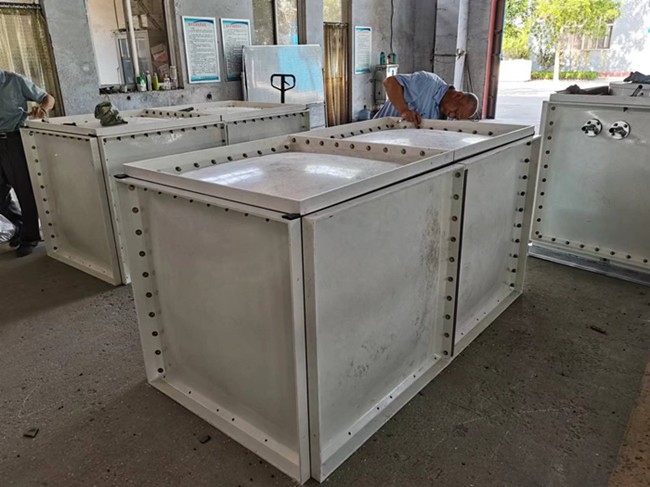 玻璃鋼水箱可分為三層結(jié)構(gòu),即內(nèi)襯層、結(jié)構(gòu)層和外表層。其功能各為:內(nèi)襯層主要起耐腐、不滲作用;結(jié)構(gòu)層承受荷載引起的應力;外保護層則用于自然老化和摩擦碰撞。