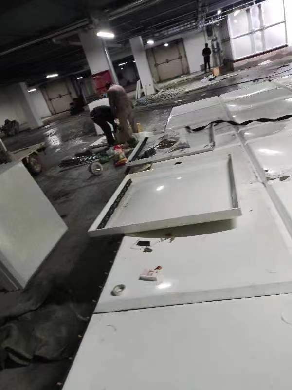 先把水泥基礎(chǔ)上平面找平,使其在同一平面上,誤差不得超過(guò) 0.5cm。